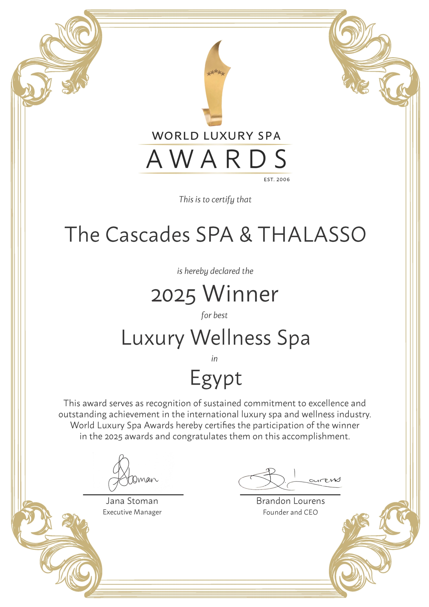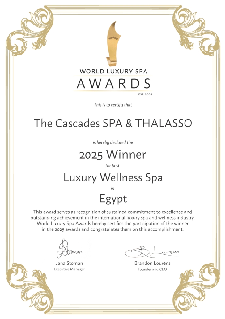 We are proud winning the Award 2020 for best Thalasso in Egypt. The SPA’s 65 treatment rooms and facilities extend over 7,500 square meters offering a range of first-class treatments and services and the purest products with a further 750 m2 Thalasso-Tonic Hydrotherapy Pool.